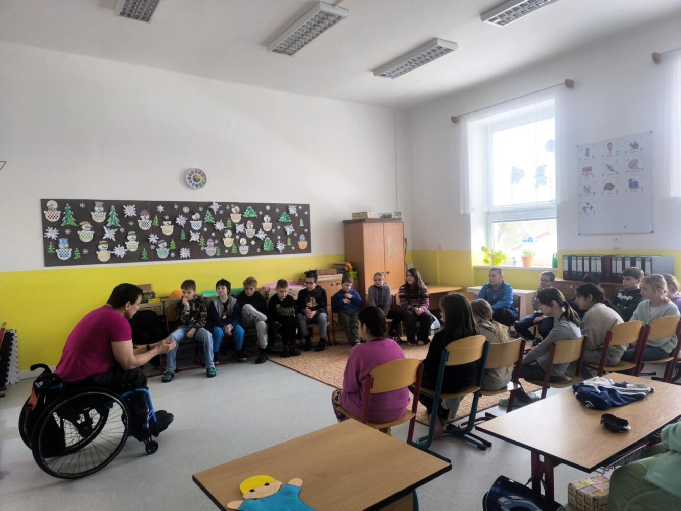 Na začátku měsíce února nás navštívili zástupci Všeobecné zdravotní pojišťovny, kteří si pro děti připravili besedu na téma VZPoura úrazům. Prostřednictvím osobních příběhů přiblížili dětem, jak se dostali ke zranění, které je připoutalo na invalidní vozík, jak se jejich život změnil a především jak lze úrazům a rizikovým situacím předcházet. Beseda byla pro děti silným a poučným zážitkem.