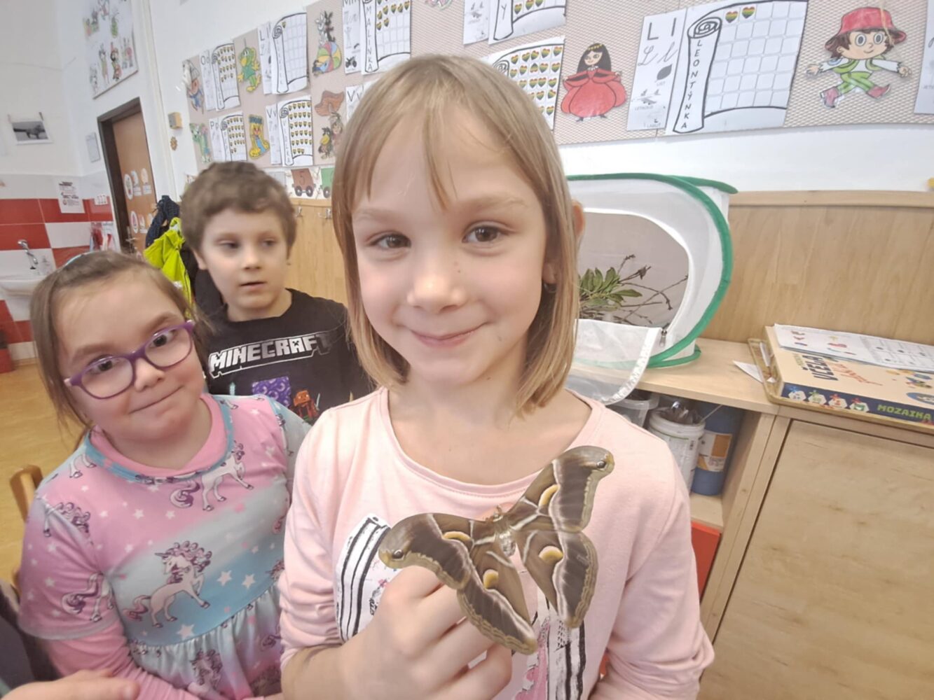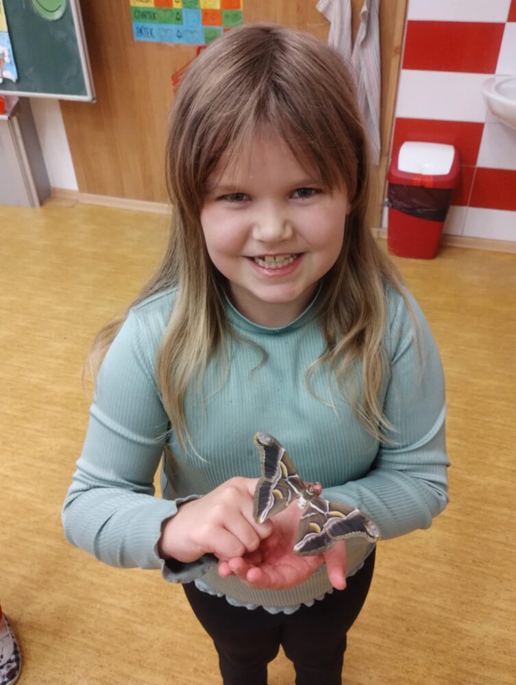 Ve škole chováme martináče pajasanové. Po zakuklení se nám již vylíhli krásní motýli. Děti měly možnost pozorovat celý jejich vývoj – od drobných vajíček přes housenky až po dospělé jedince. Věříme, že se nám chov podaří zachovat a budeme moci v tomto fascinujícím koloběhu přírody pokračovat i nadále.